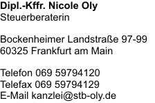 Die gesetzliche Berufsbezeichnung Steuerberaterin wurde in der Bundesrepublik Deutschland (Hessen) verliehen.